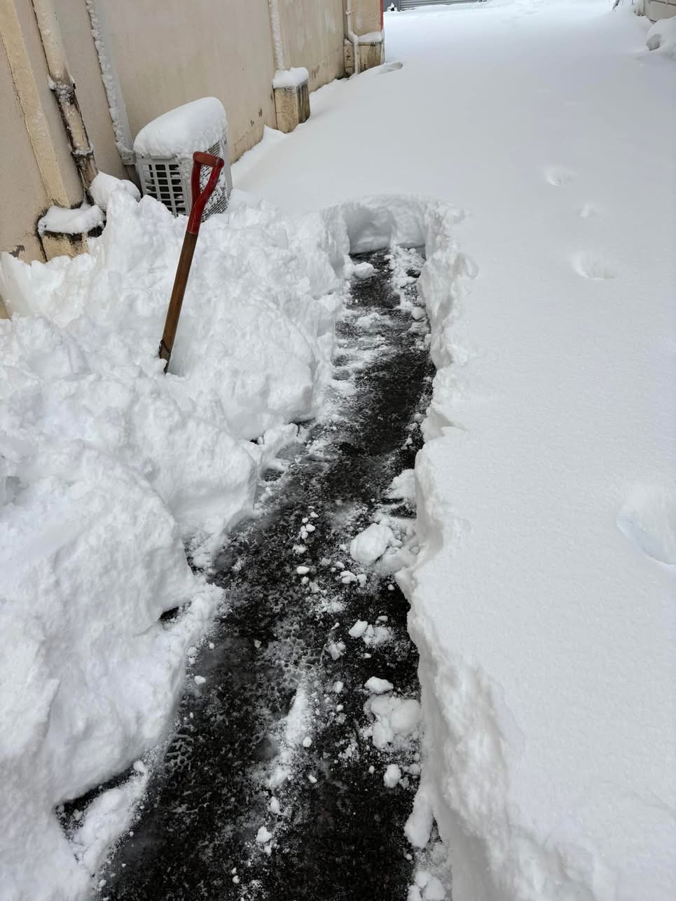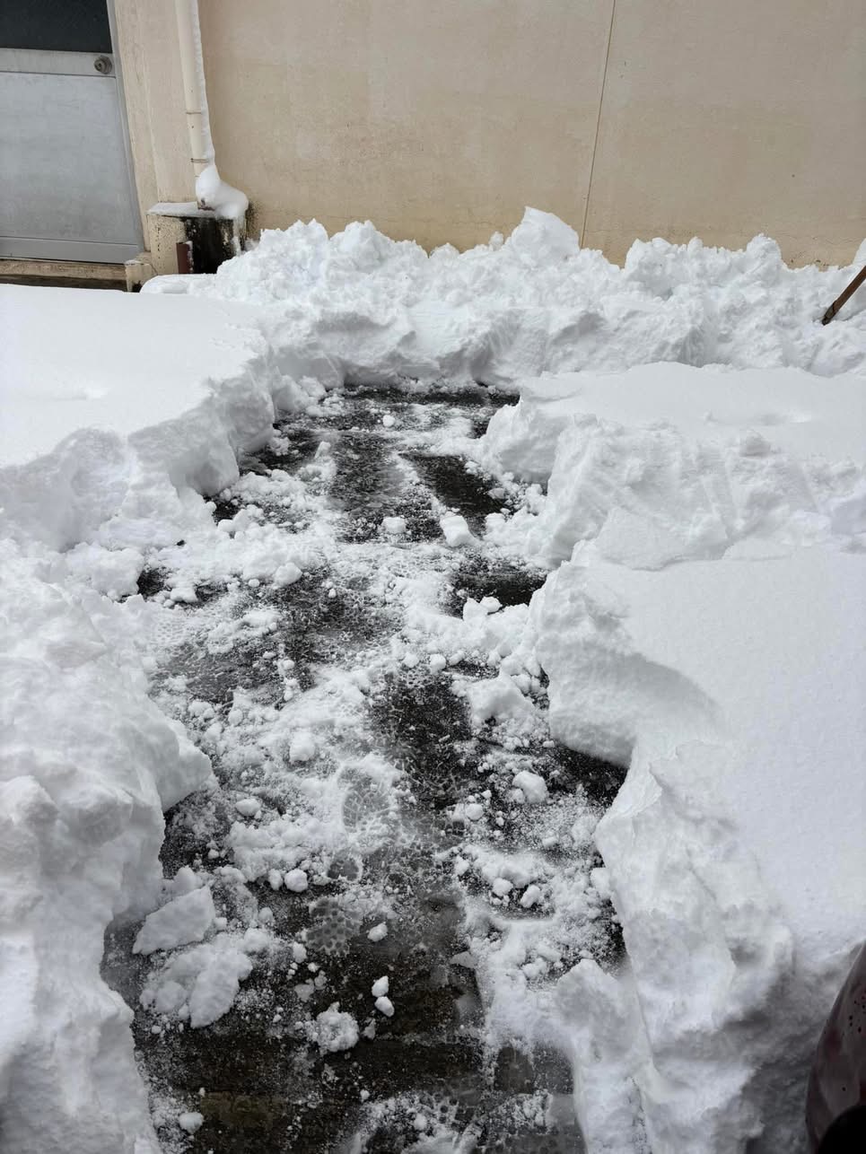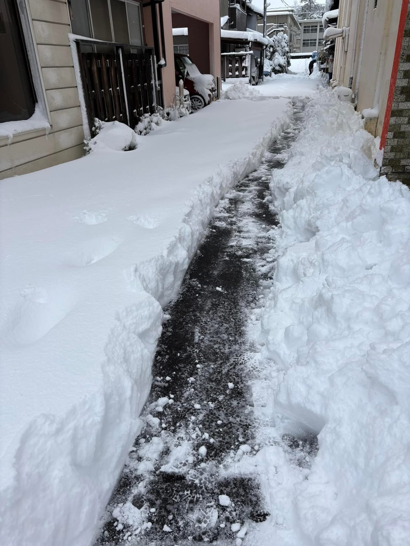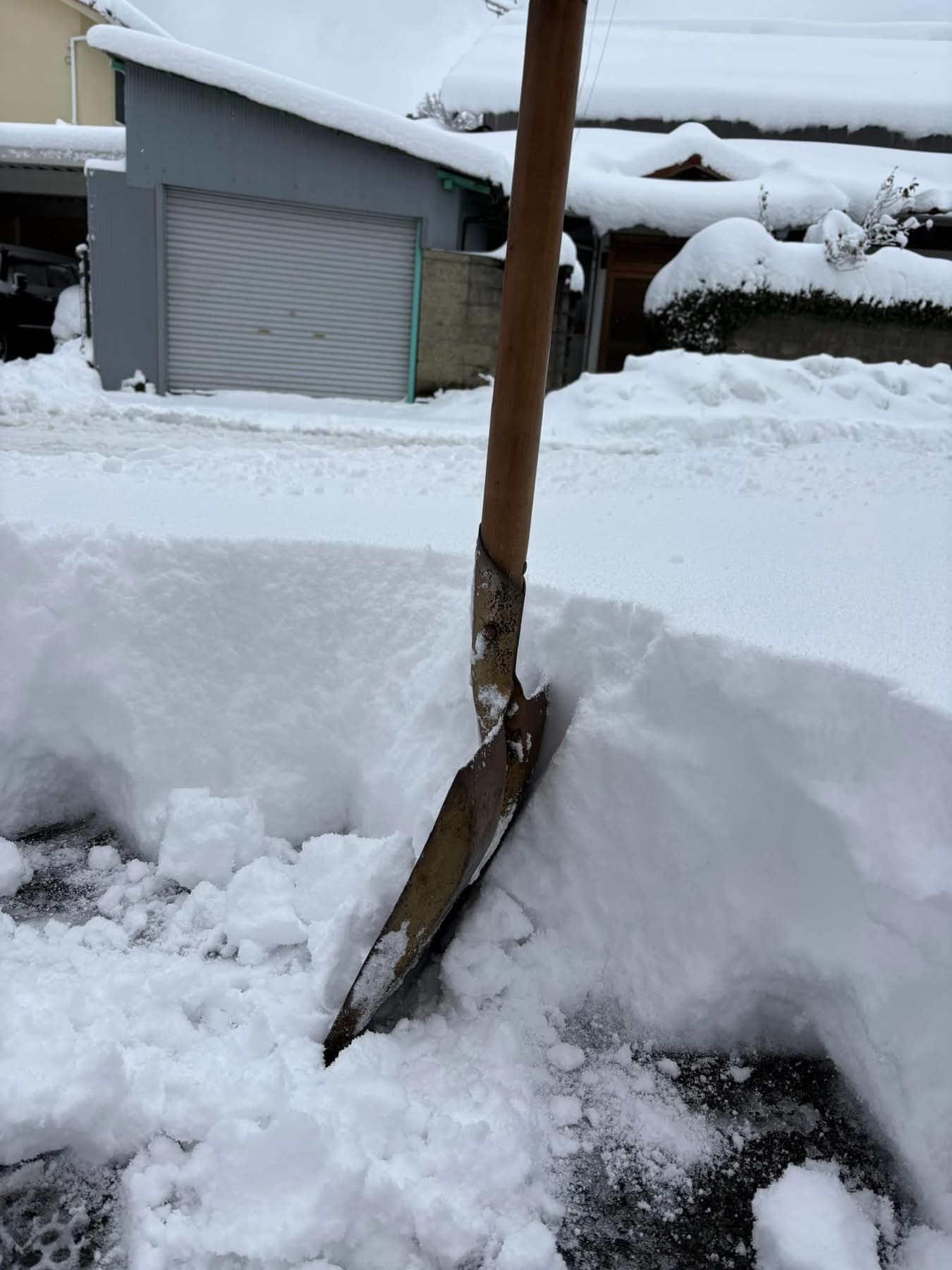 さて、家の玄関から出発した除雪作業、少し前進しましたよー。